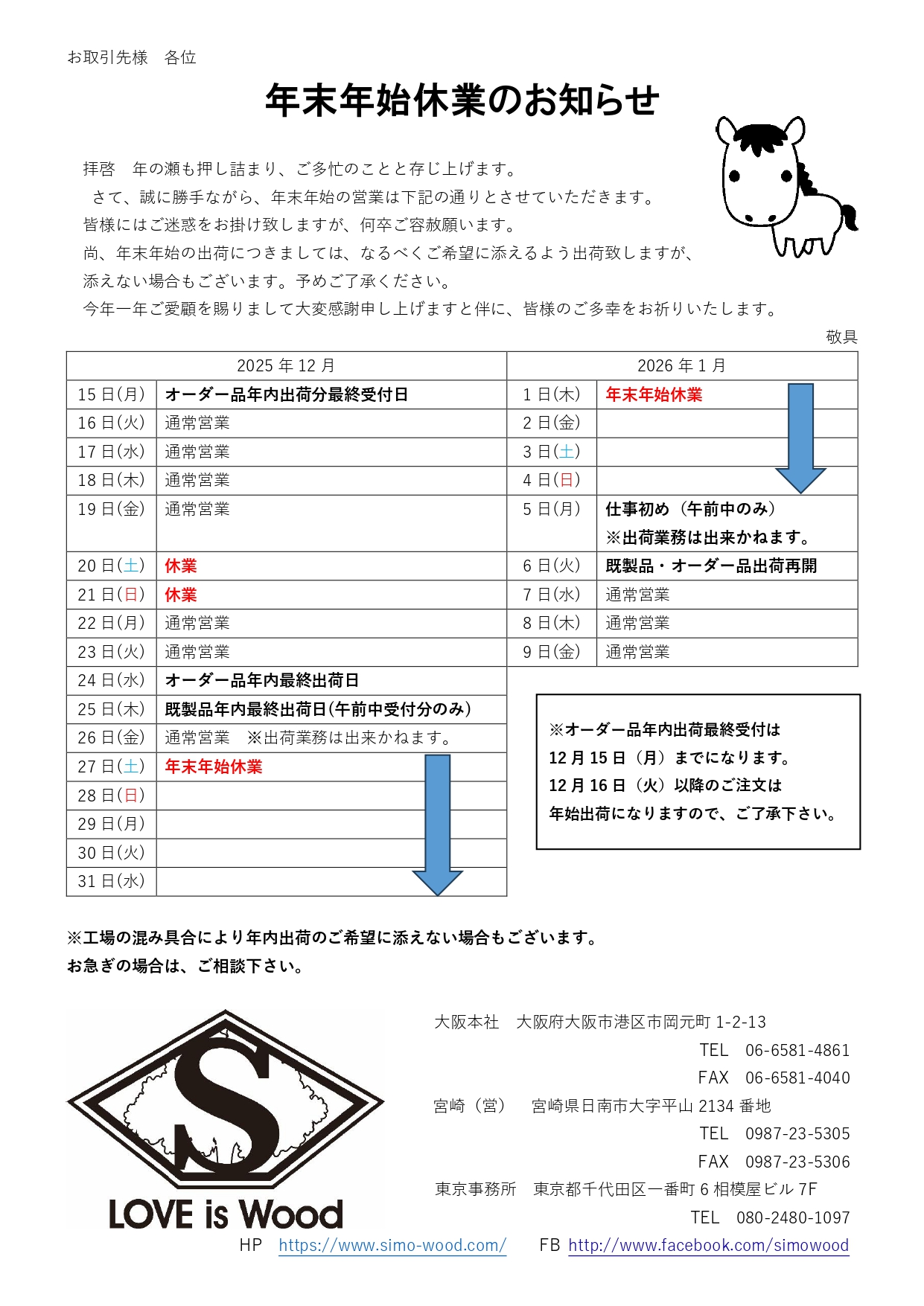 年末年始休業のお知らせ